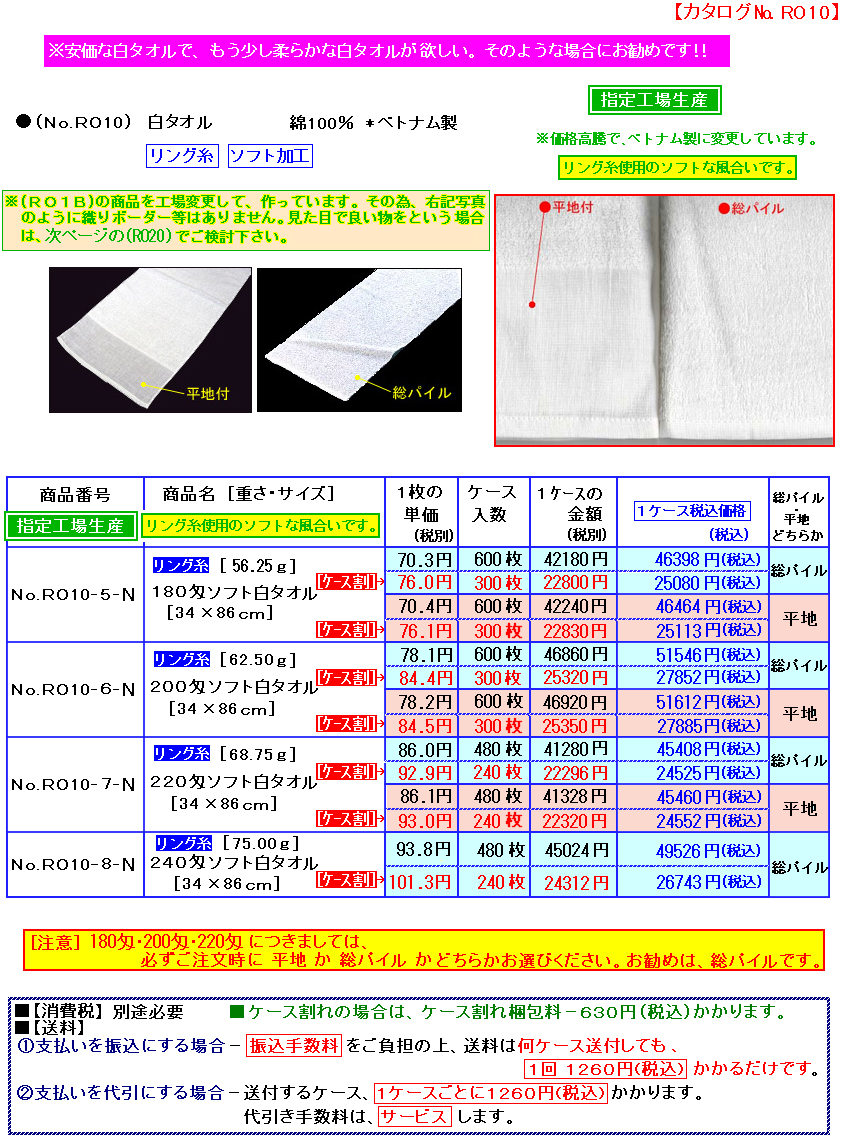 【 ★カタログ No.RO30 カラータオル も人気です。 】