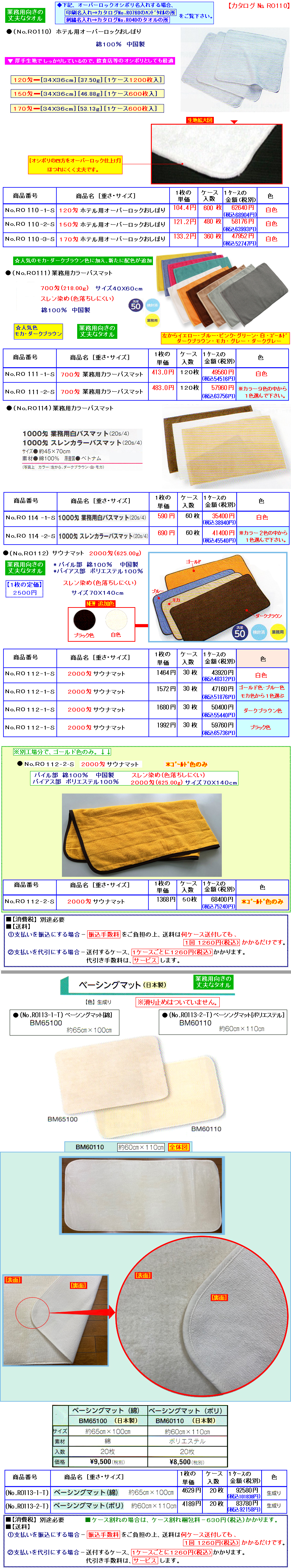 ★下記(No.RO110)オーバーロックオシボリも刺しゅう名入・袋入が可能です。→カタログNo.RO40の刺しゅう名入の所[タオル]をご覧下さい。
