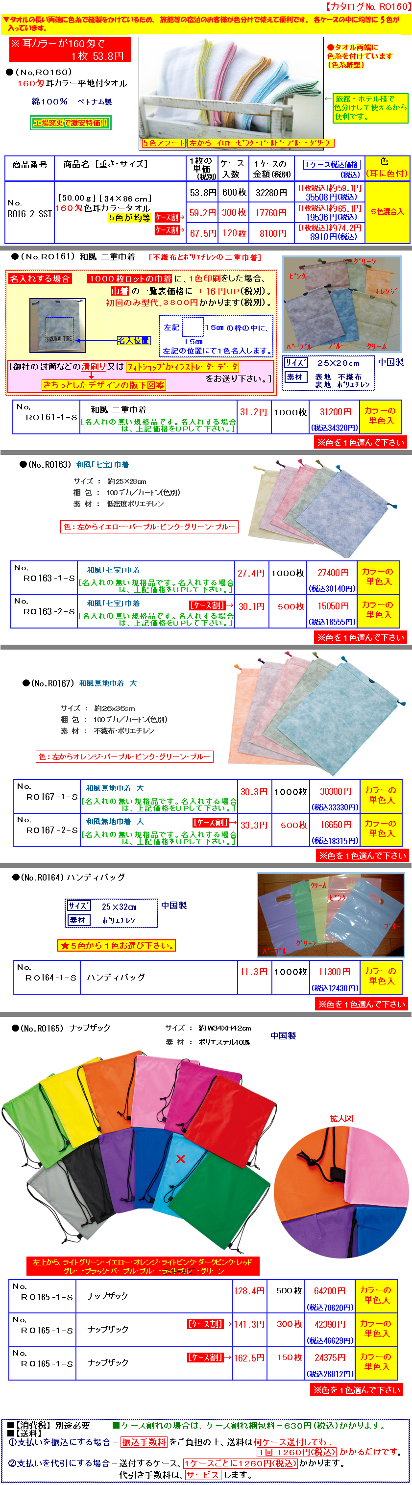 ◆下記、耳カラータオル [5色拡大図] [名入れ見本] ページへ ▼下記(RO161)和風二重巾着名入れ見本ページへ