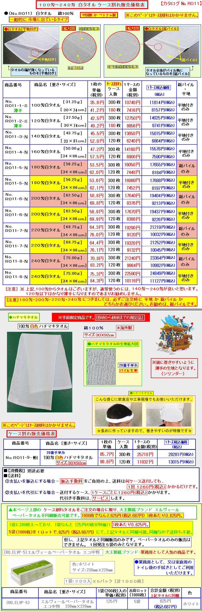 [ 100匁〜240匁 白タオル ケース割れ 販売ページ (裸送り/印刷名入れ/袋入れの場合)]