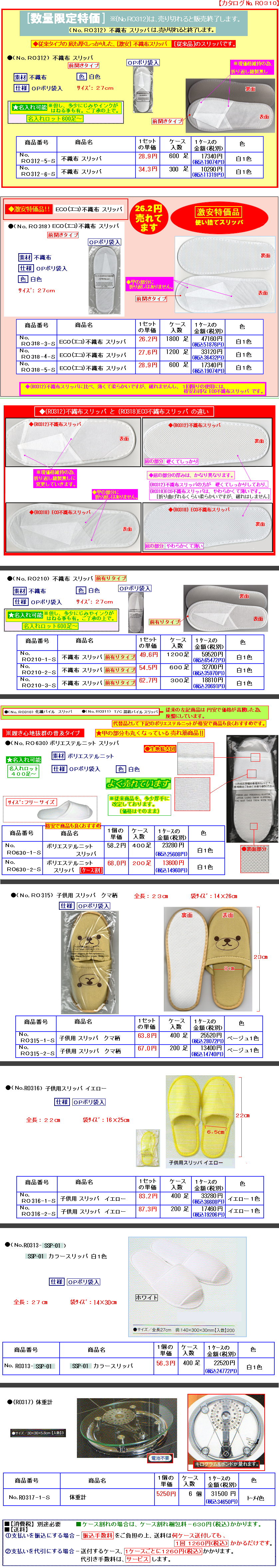 [◆(RO312) (RO210) 不織布スリッパ拡大図へ]