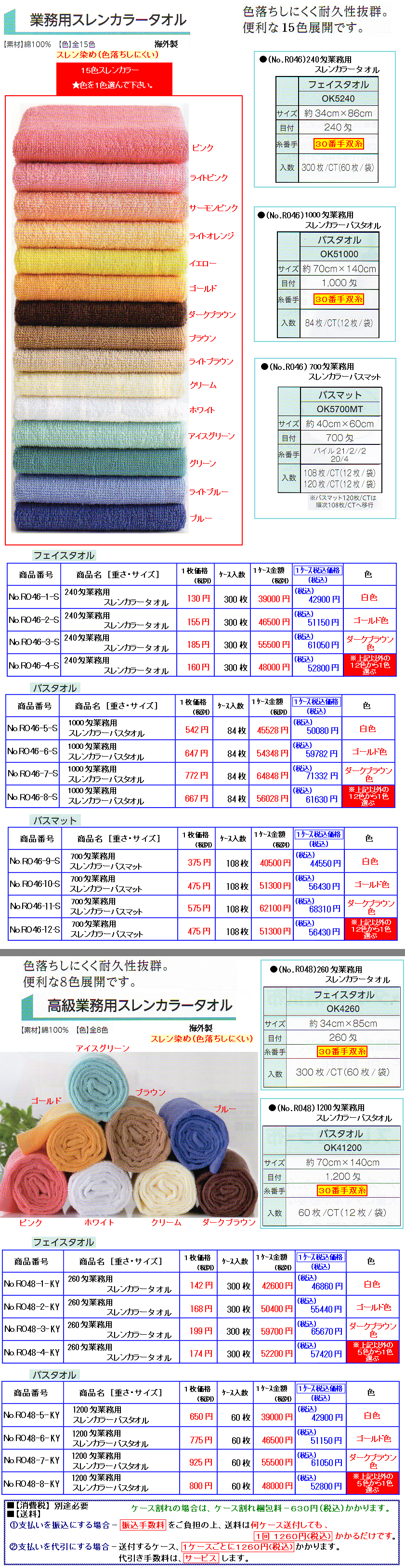 ●280匁業務用ロングパイルタオル[スレン染め/業務用]●業務用タオルは、固すぎるそういう場合にお勧めです。