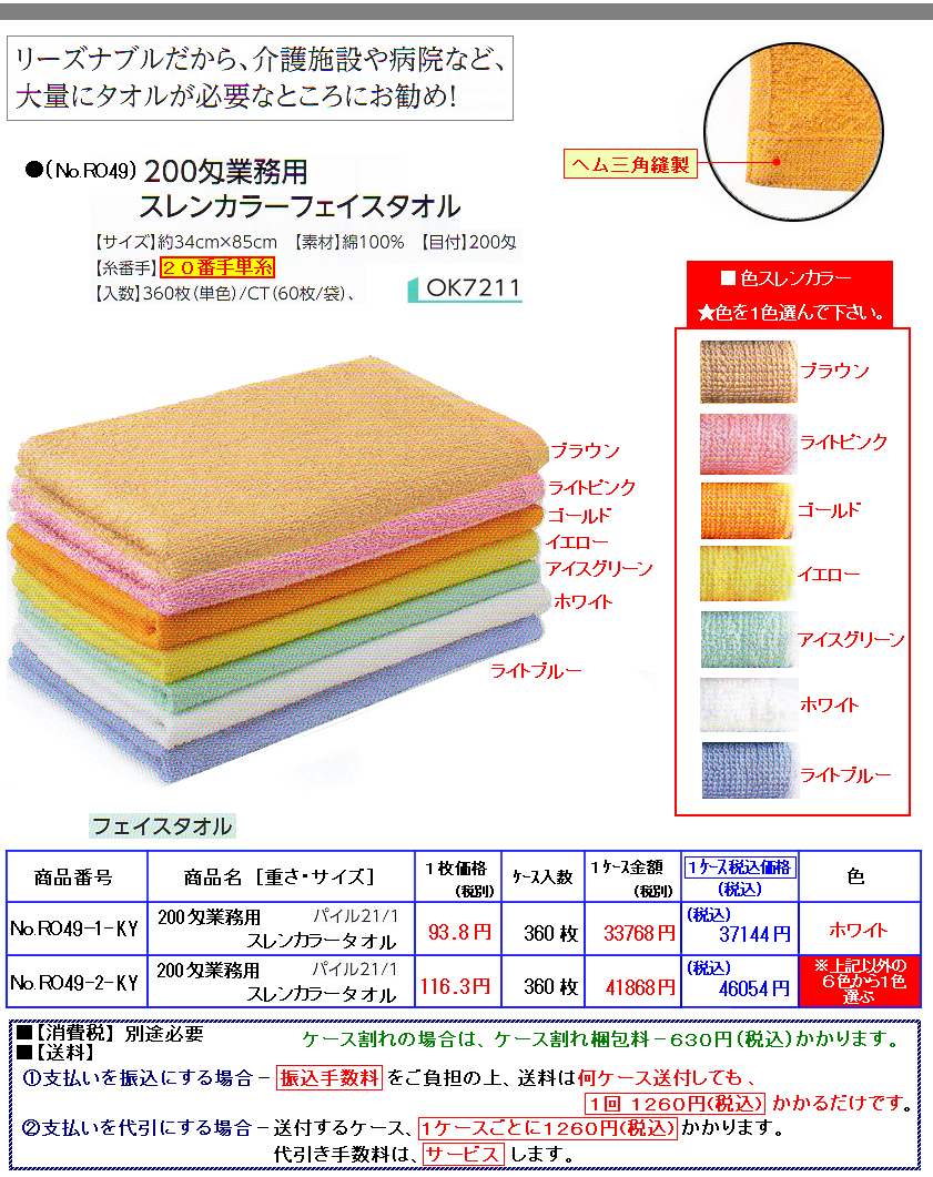 ▲上記、200匁業務用ゴールドタオルに合わせた、