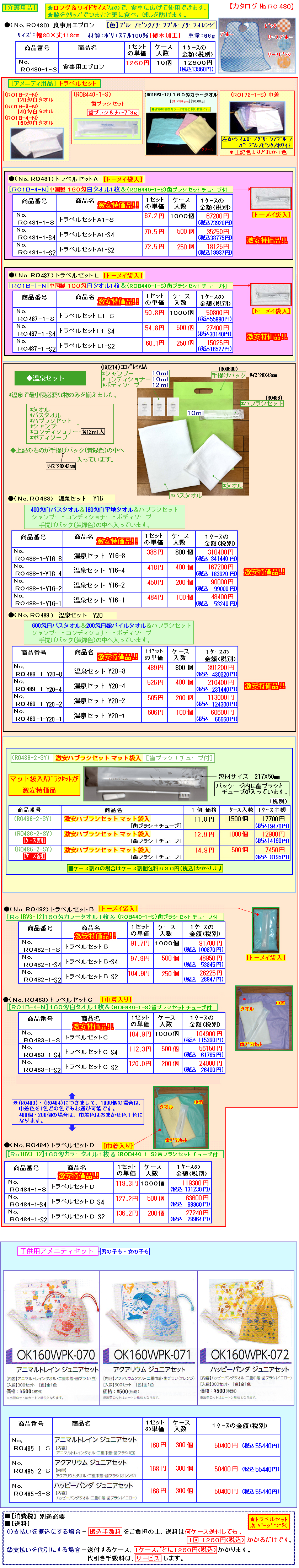 ★トラベルセット 73.6円[160匁白タオル+歯ブラシセット+ハンディバックへセット]ページへ