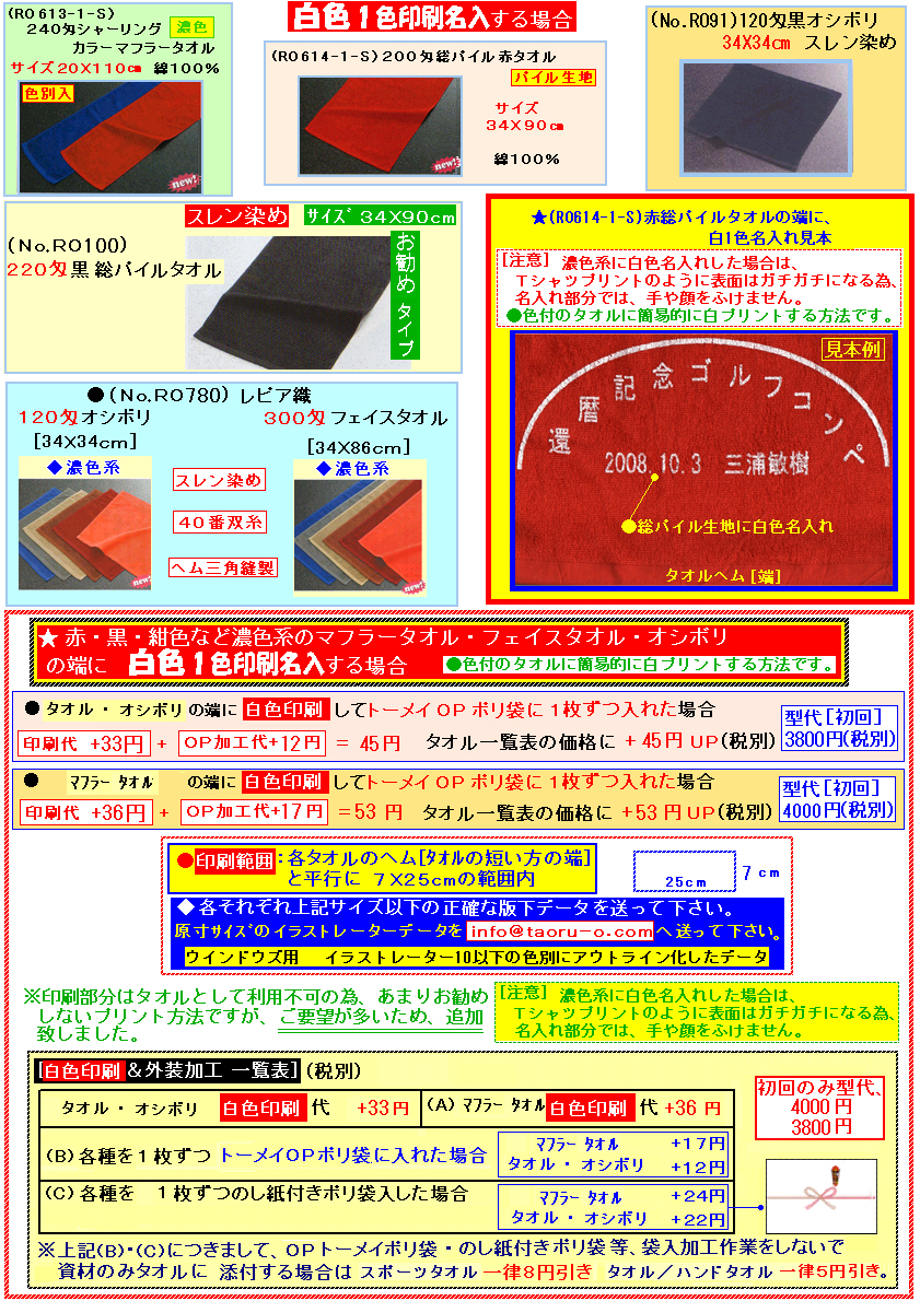 | (RO613) 黒・紺・赤シャーリングマフラーページへ | (RO614) 赤・紺・紫シャーリングタオルページへ | (RO30) 160〜240匁カラータオルページへ |