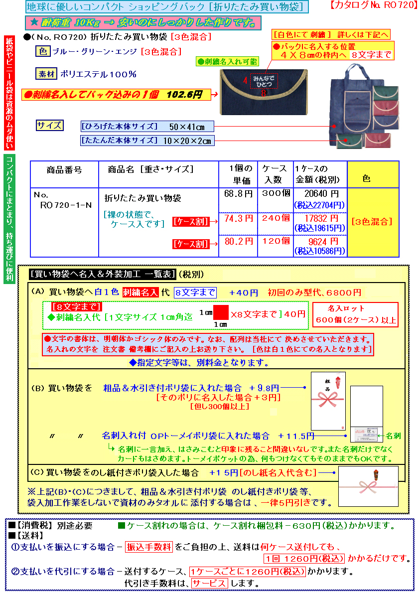 ●175円レジかご用買い物袋ページへ。 ●350円ベンリー袋ページへ ●99円 12色カラーエコバックページへ