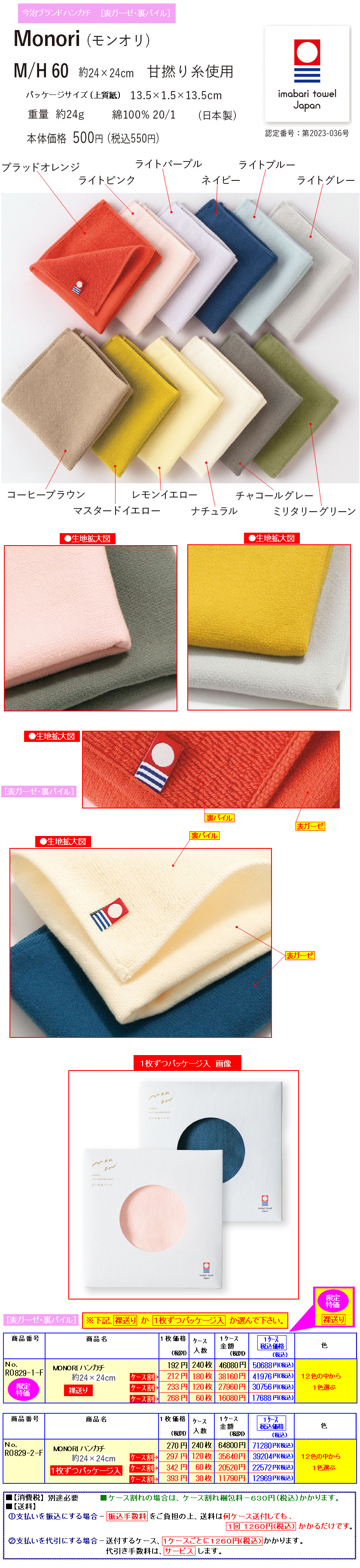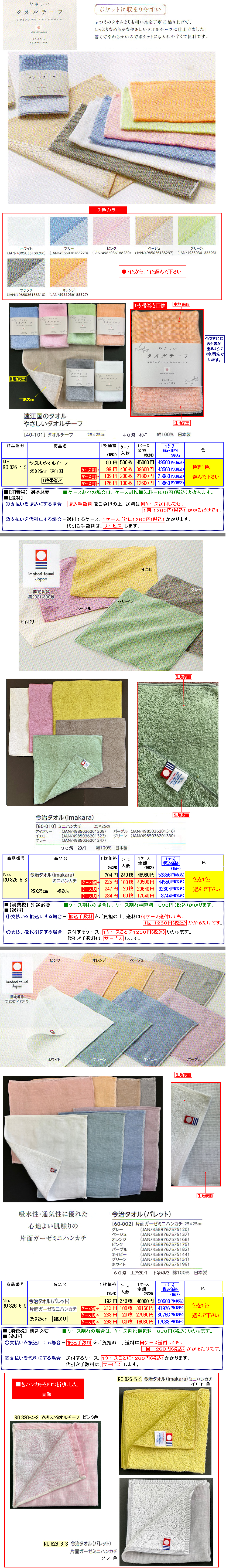●上記21色カラー今治ブランドハンカチと同色のフェイスタオル・バスタオル