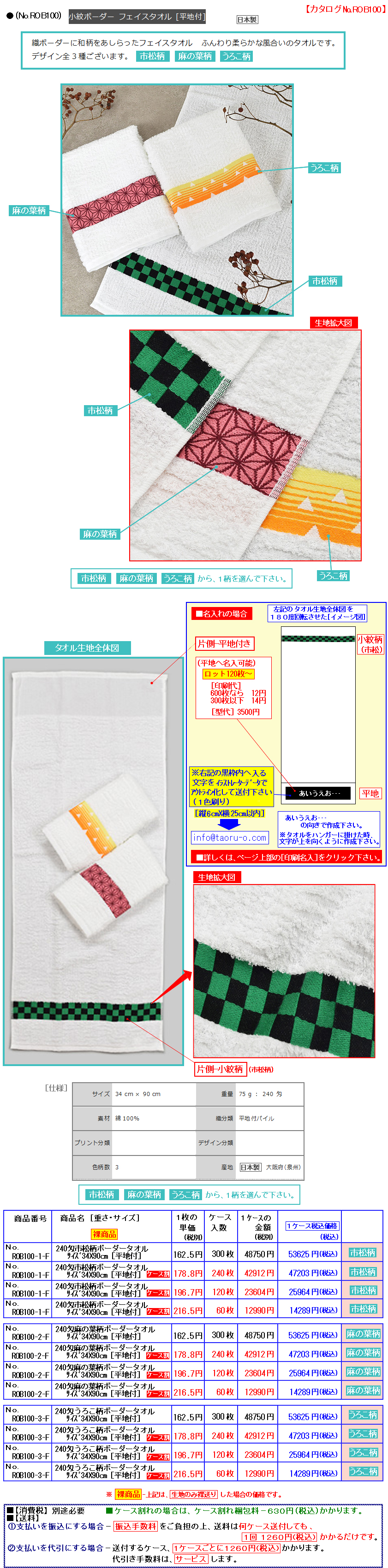| ▼下記商品を印刷名入[600枚の場合+12円 300枚以下+14円]する場合&袋入れ[+10円]する場合は、この文字をクリックして下さい。 [下記タオル価格に 印刷名入れする場合は、600枚なら+12円。300枚以下+14円。/袋入れする場合は+10円 をたします。詳細はクリック。 |
