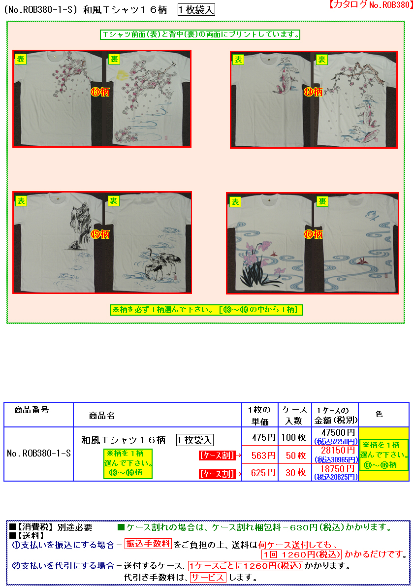 ●和風柄 Tシャツ 次ページへ [No.1] [No.2] ◆↓↓下記ROB380の拡大図ページへ