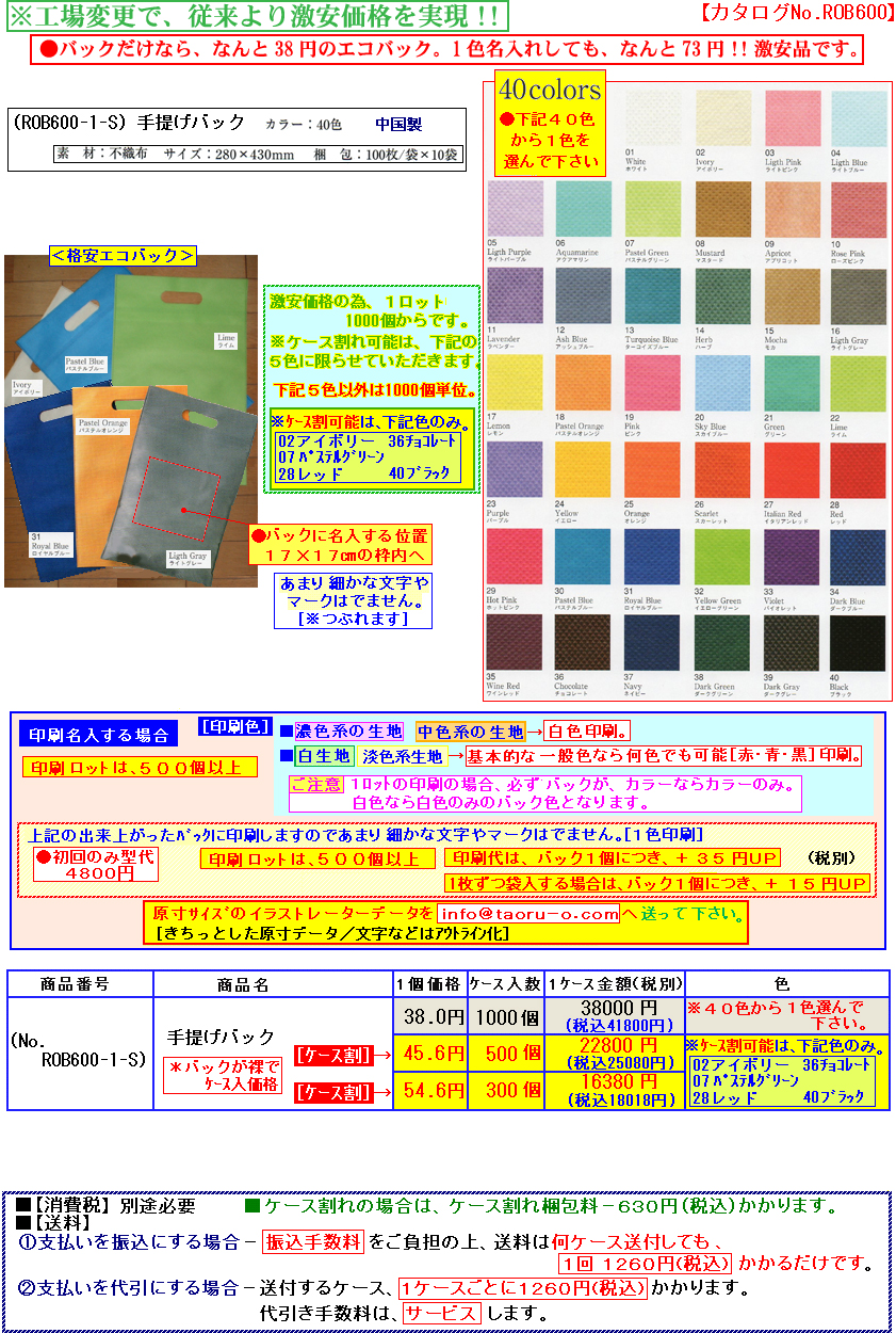 ●40色カラー不織布手提げバック 50円 名入れしても 95円[書類やパンフレットが横向きで入る大判手提げバック] ![]()
