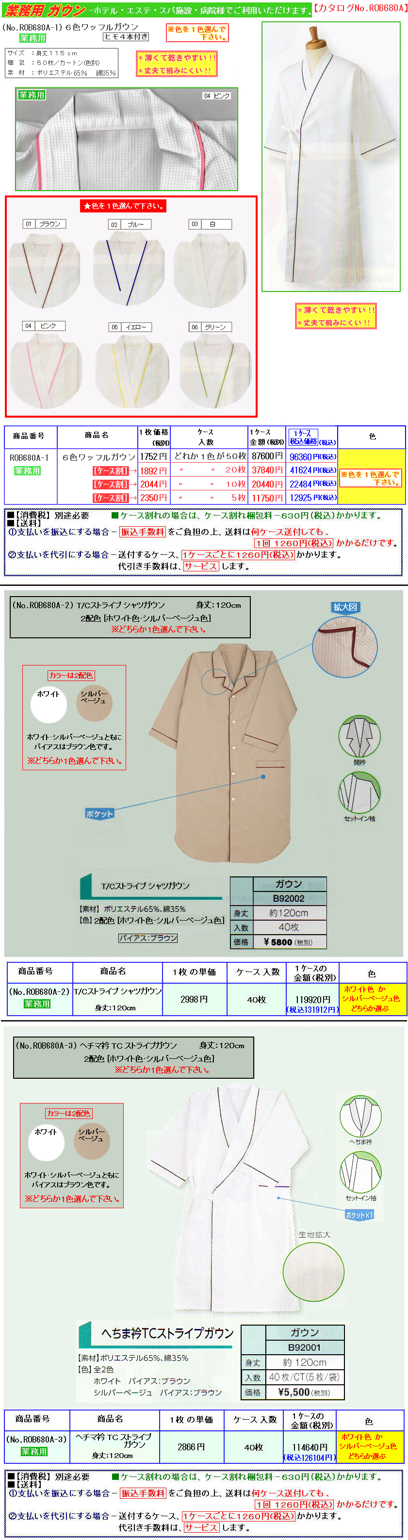 ▲上記・▼下記、6色ワッフルガウン・ストライプガウン・キャンディストラップバスローブ[拡大図ページへ]