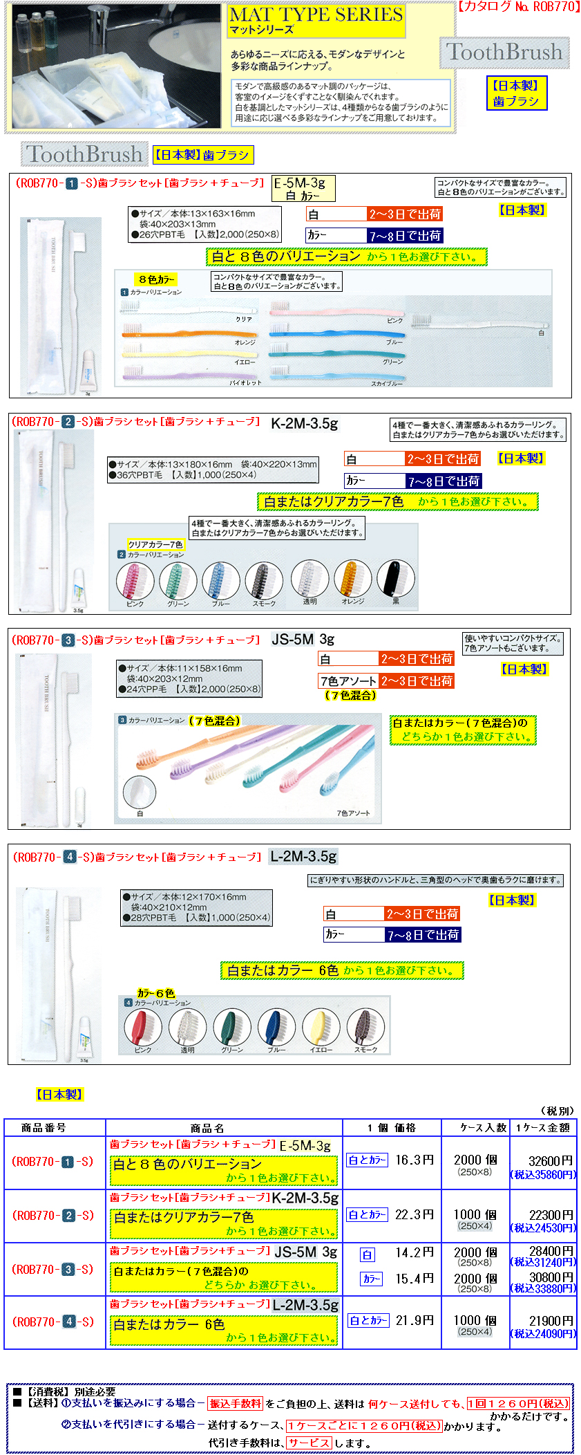 ★★★★ 下記ページは、国産ハブラシや同じ白い包材のマットシリーズのアメニティ ページです ★★★★