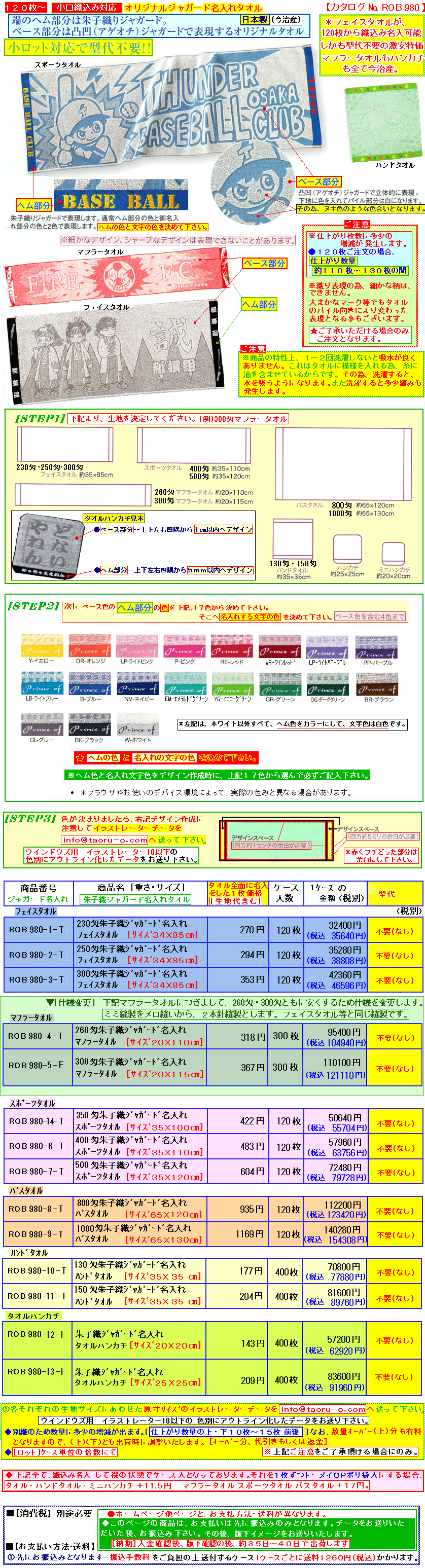 ■(計算方法) (ROB980-1-T)230匁朱子織ジャガード名入れフェイスタオルを注文の場合、名入れジャガード織りし1枚ずつOP袋入れした場合は、