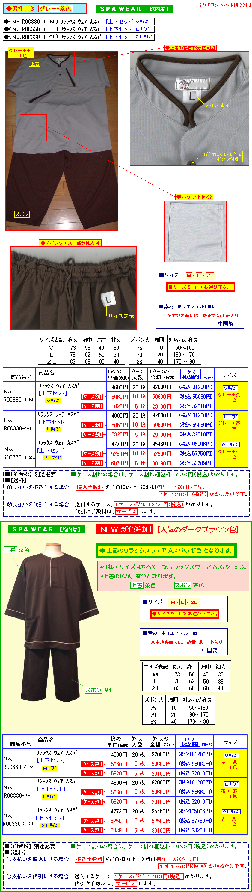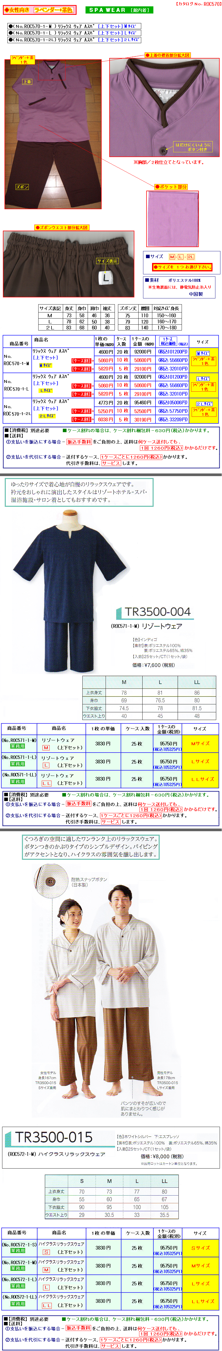 SPA WEAR [ 館内着 ] 上下セット*2240円[業務用]