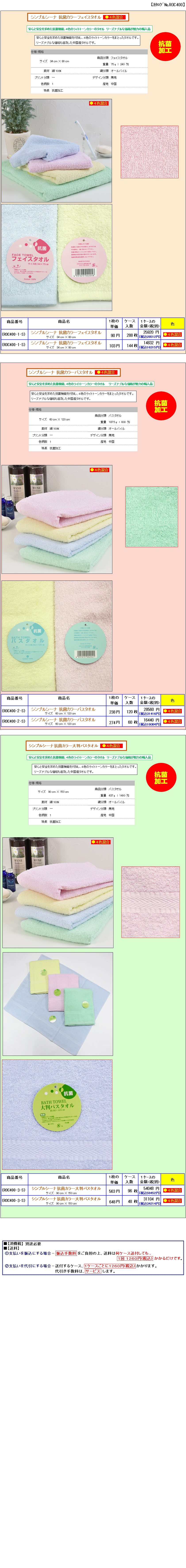 ●[日本製]180匁〜200匁白・カラータオル67.5円