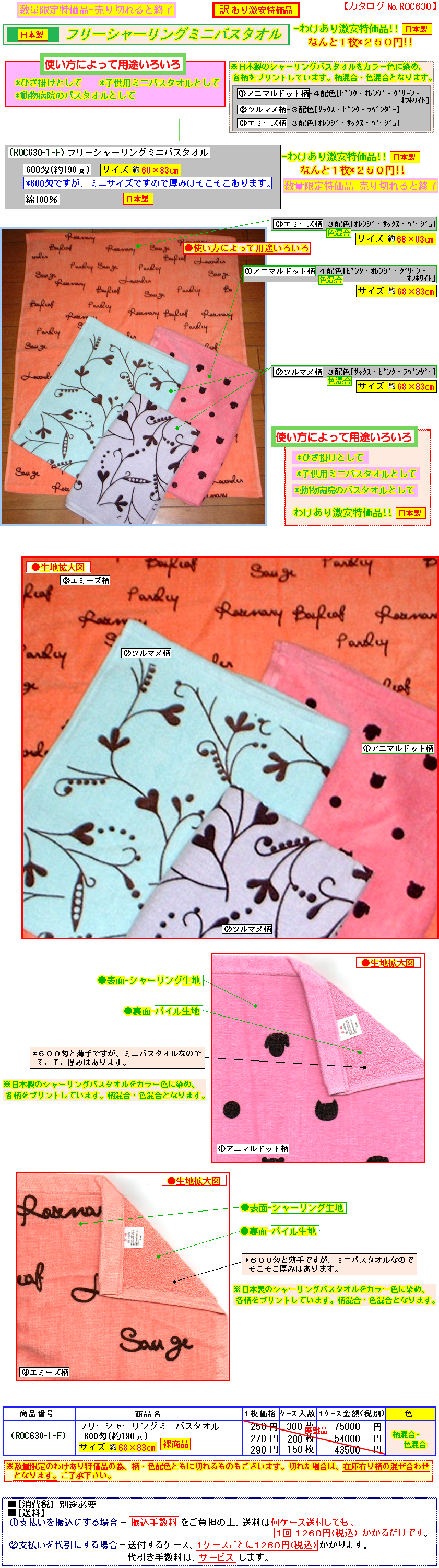 | ※[ ご注意/変更箇所 ] [北海道と離島と沖縄のみ。] 運賃高騰の為、北海道/北海道の離島/(本州・四国・九州)の離島/沖縄のみ送料が変わります。 @振込みにしても、送料が右記価格で、1ケースごとにかかります。 北海道--2350円(税込) 北海道の離島--2900円(税込) (本州・四国・九州)の離島--1850円(税込) 沖縄--2970円(税込) A代引きの場合は、北海道/北海道の離島/本州・四国・九州の離島/沖縄につきまして、上記送料以外に代引料が1ケースにつき、420円(税込)かかります。 ※離島と沖縄のみ、元々1ケースの荷物でもサイズ・重量により複数ケース扱いになることもございます。 また、近年、橋が通った場合も、運送会社の規定により離島扱いとなります。 ※上記以外の本州・四国・九州は今まで通り、1260円(税込)です。 |
