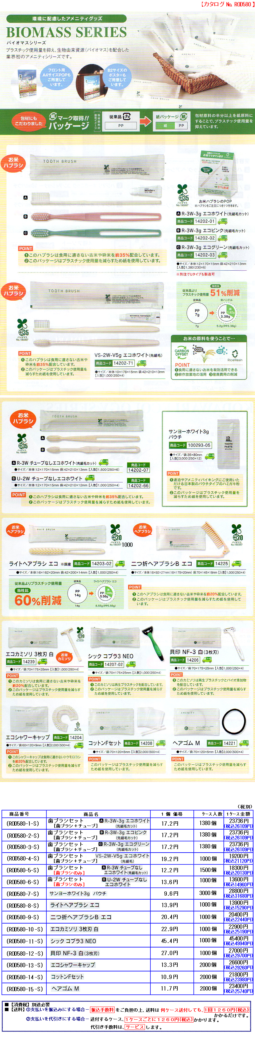 歯ブラシセット 12.5円/[中国製]ボデイスポンジ 12.5円/LSカミソリ15.6円/二つ折スリムブラシ16.3円/シャワーキャップ9.8円/コットンセット10円